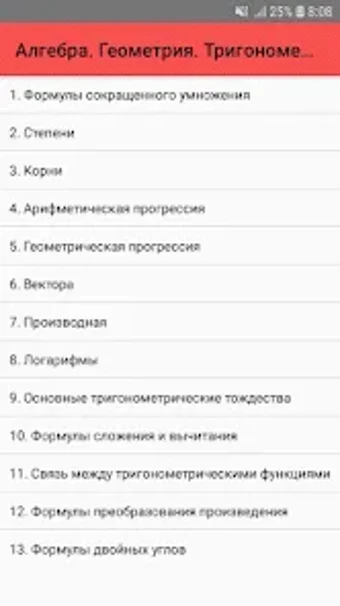 Алгебра. Геометрия. Тригономет هو تطبيق مرجعي محمول لطلاب الرياضيات. تم تطوير هذا التطبيق بواسطة MyAppBook وهو متاح حصريًا لمستخدمي Android. التطبيق مجاني للتنزيل ويوفر مجموعة شاملة من الصيغ لمنهج الرياضيات المدرسية.